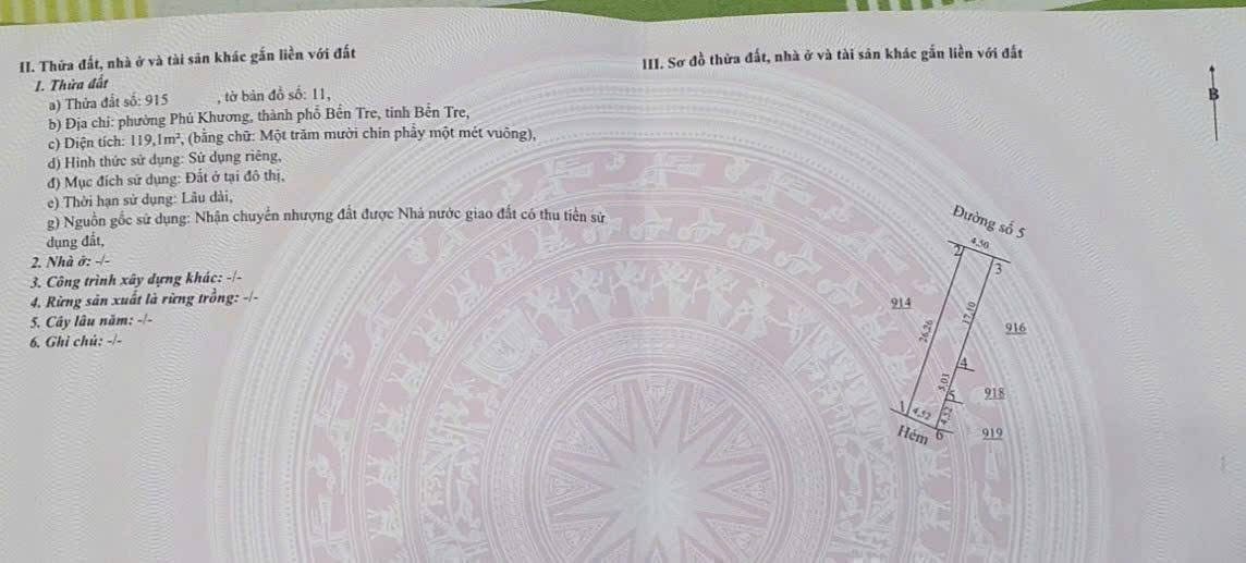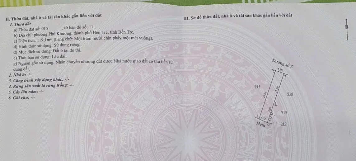 ➖Diện tích 119m, ngang 4,5m full thổ cư, quy hoạch OĐT