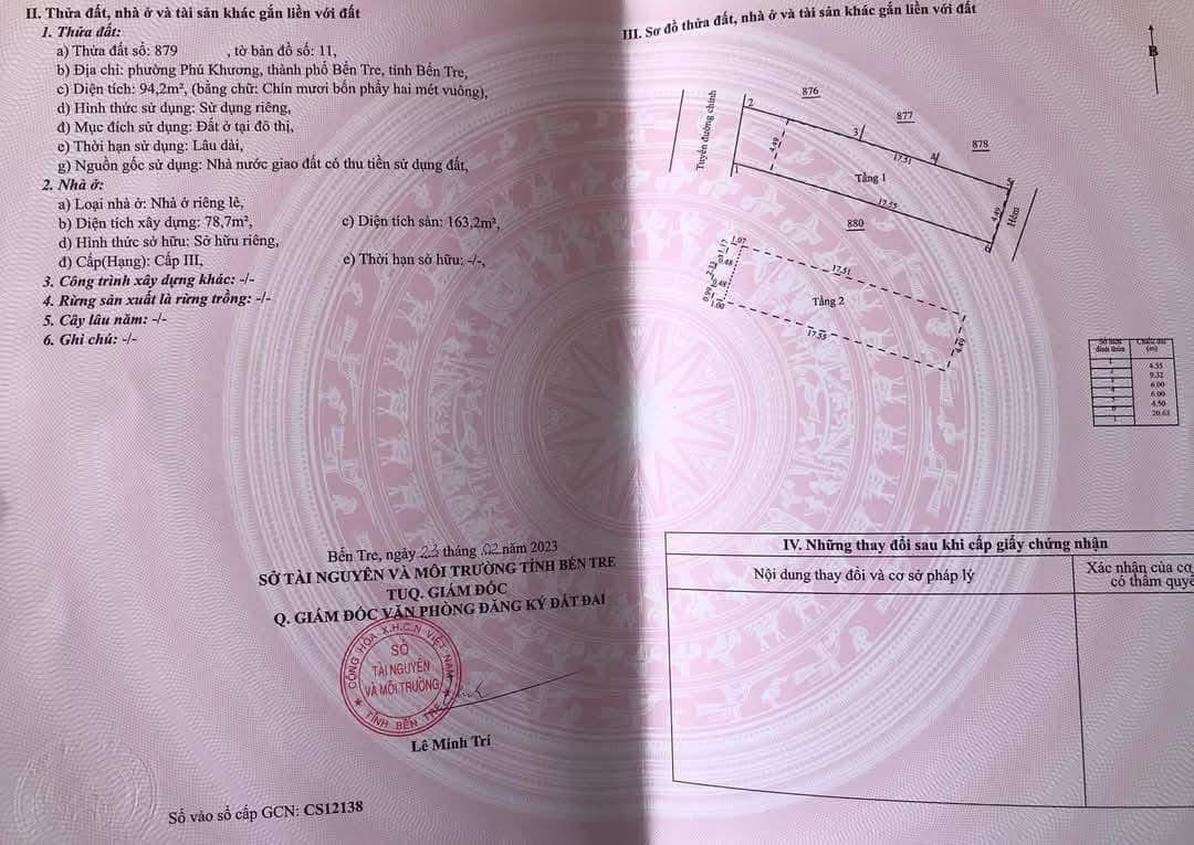 [4-204] TTC🔥🔥Phú Khương - Tp Bến Tre Bán Nhà - 01 trệt - 01 lầu • Trục đường chính • KDC Hiệp Hòa Phát • Dtích sàn: 163m2